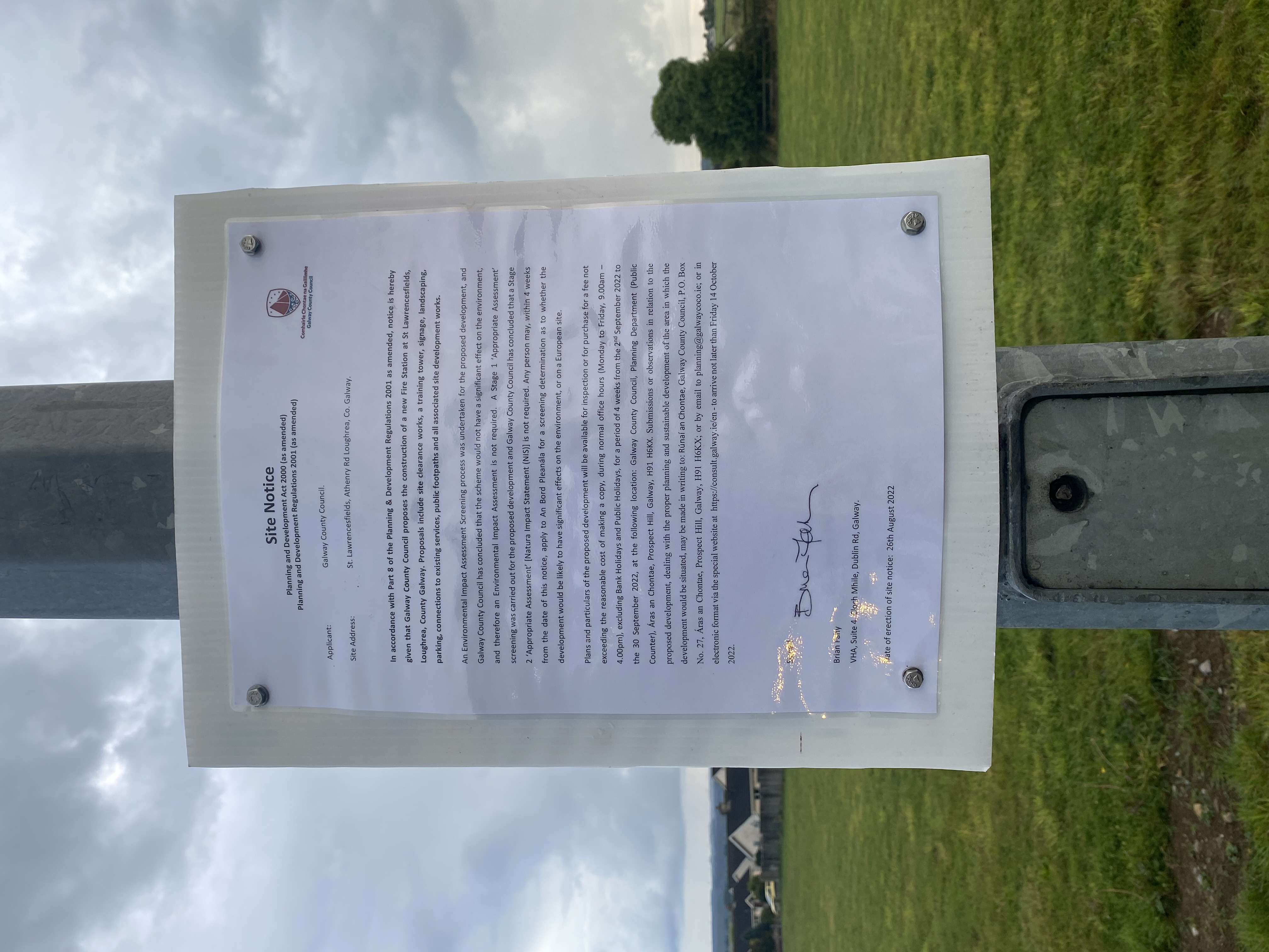 given that Galway County Council proposes the construction of a new Fire Station at St Lawrencesfields,