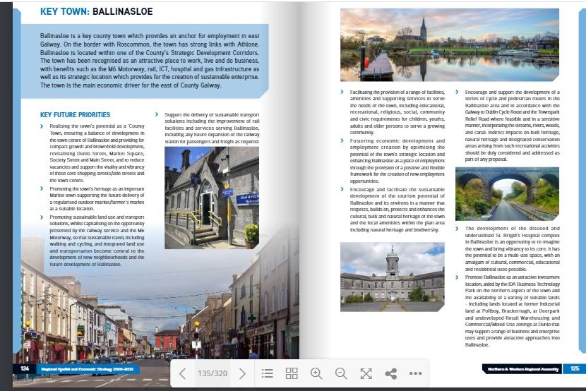 The NWRA RSES Report encourages neighbouring and adjoining county councils to harmonise approaches to development and we strongly feel that Ballinasloe could form a pilot in this regard with Roscommon County Council & Offaly County Council .